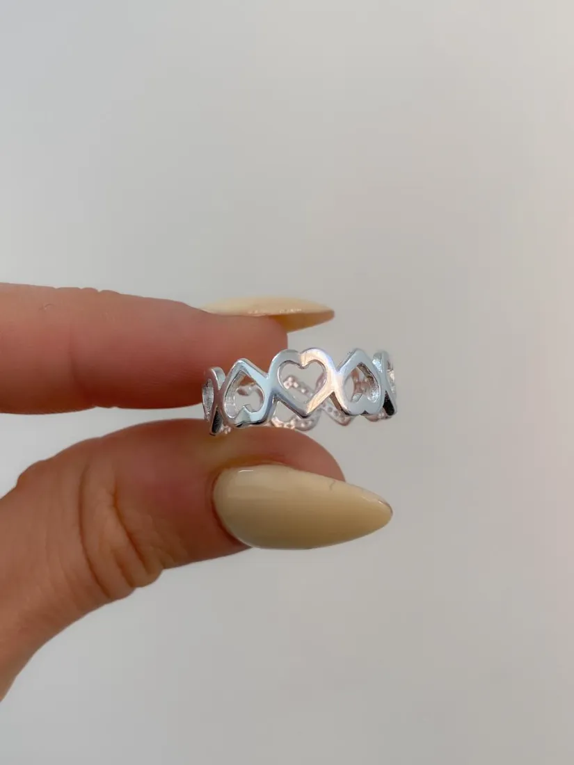 Anillo de plata corazones calados
