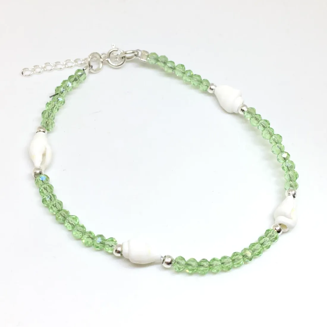Pulsera de plata y cristal con 6 caracoles chicos 18+3cm