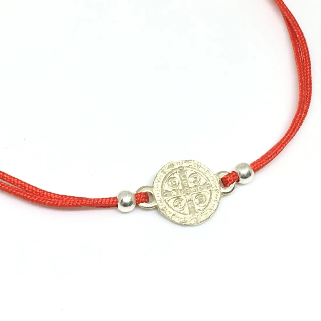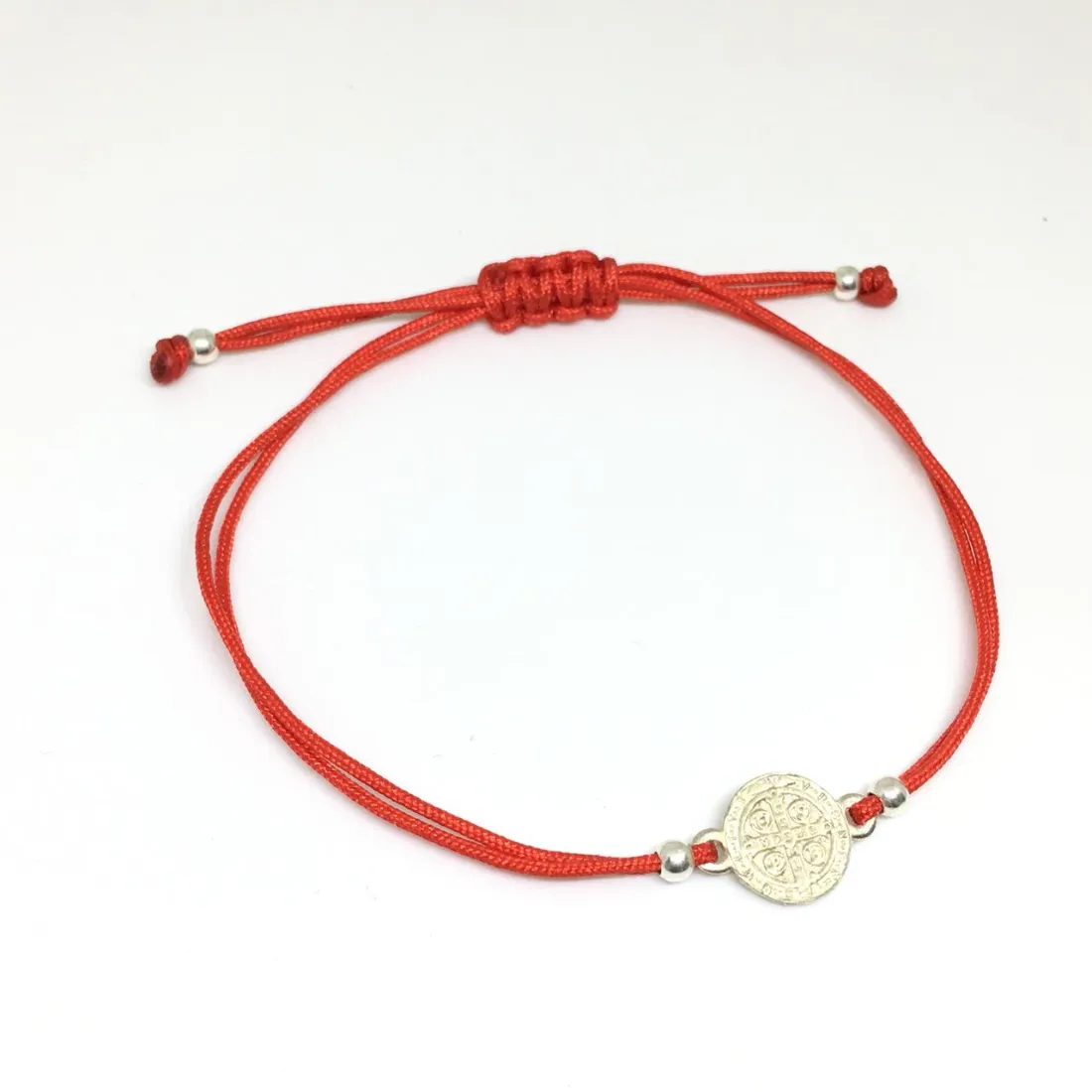 Pulsera macrame San Benito de Plata, hilo rojo simple