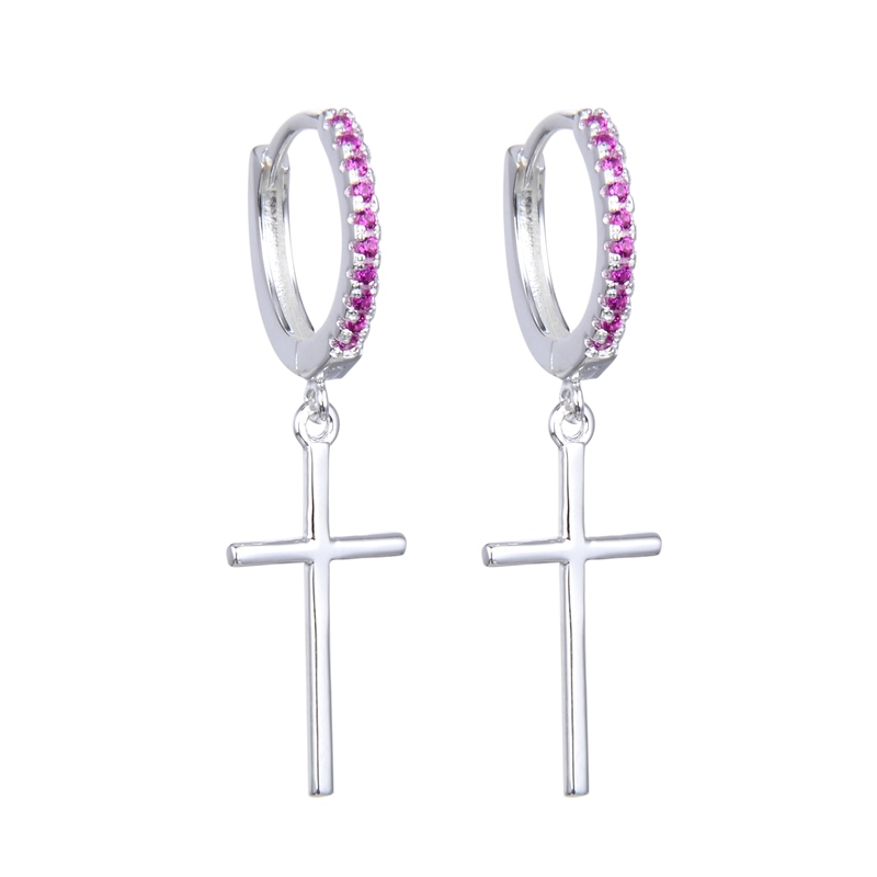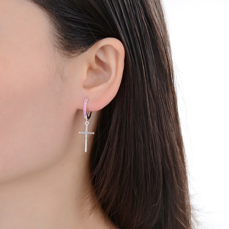 Aro de plata argolla 1.3cm dije cruz - Colores