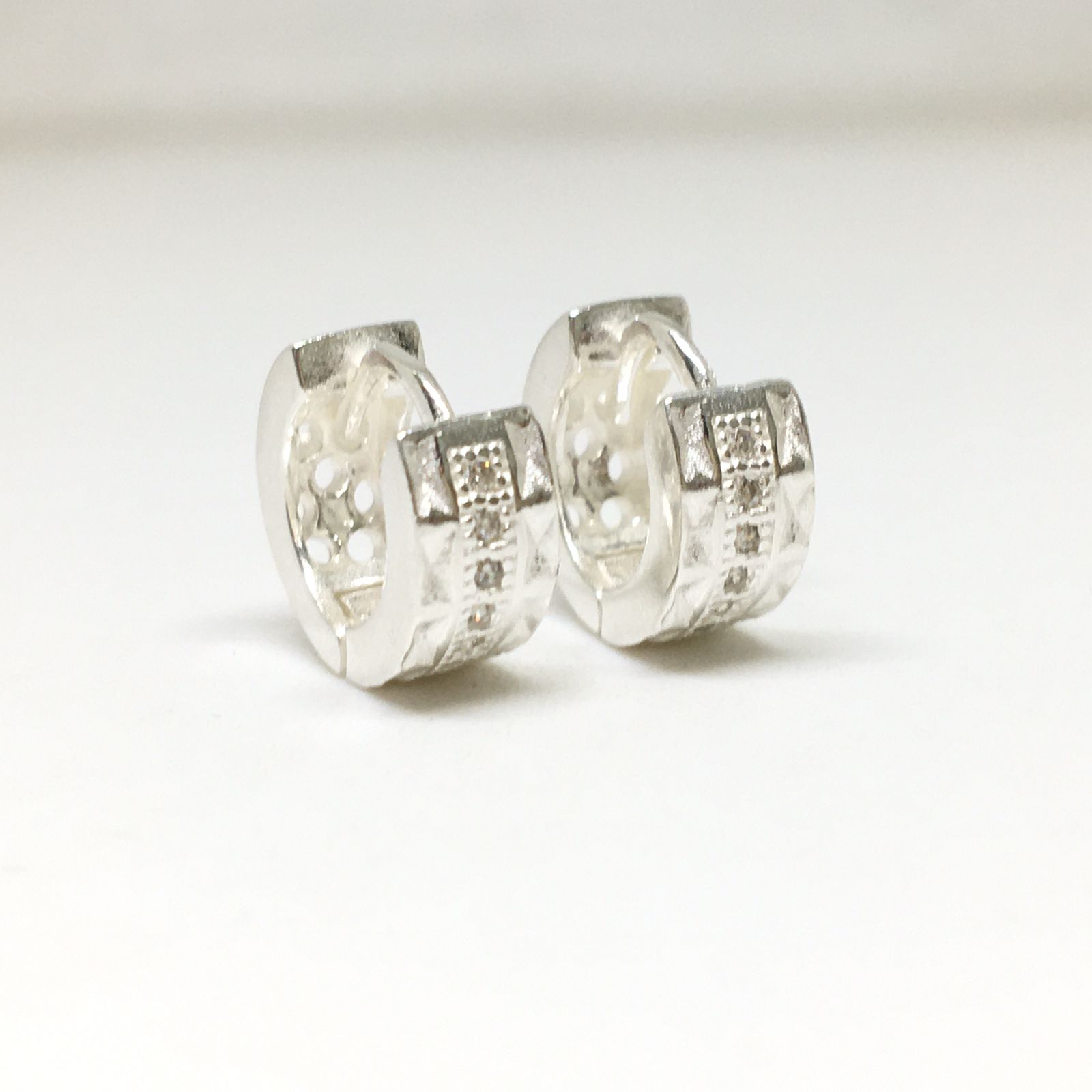 Aro argolla de plata con cubic y rombos 1.4cm ø
