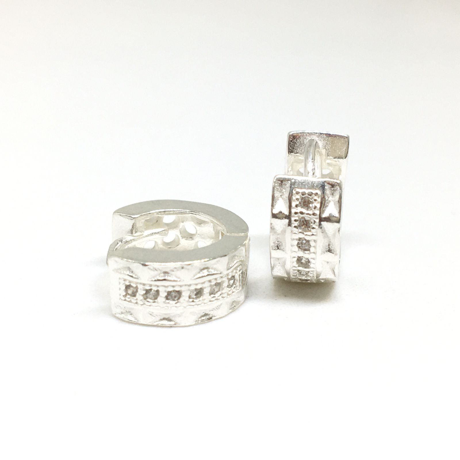Aro argolla de plata con cubic 1.5x1.2cm cierre ingles