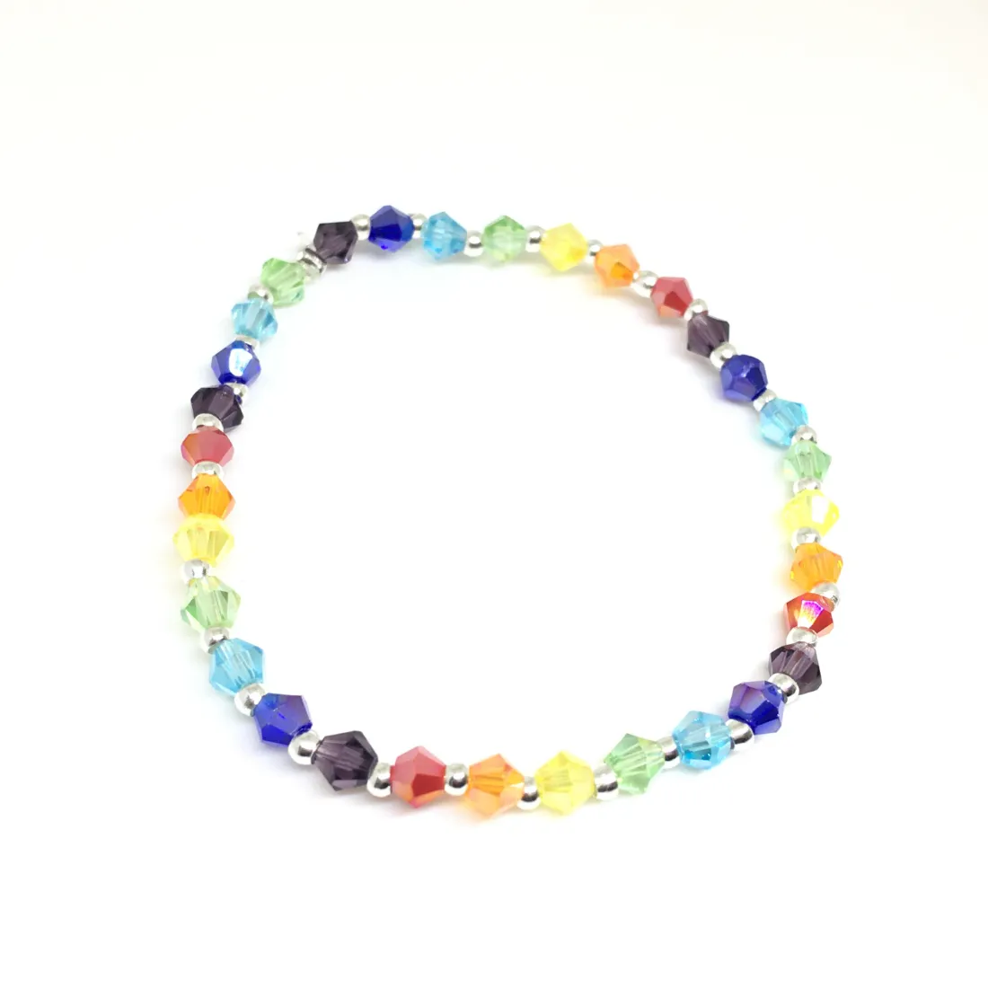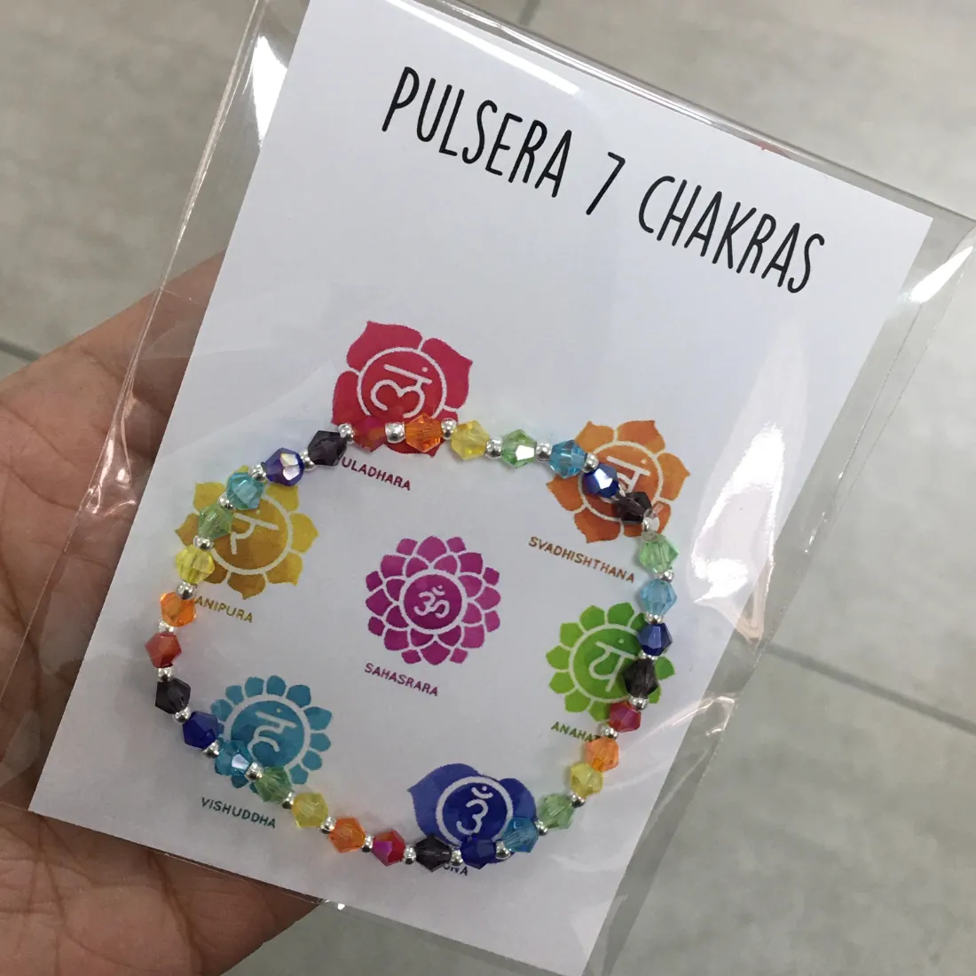 Pulsera de plata elastica ajustable con cristales y bolitas - 7 chakras