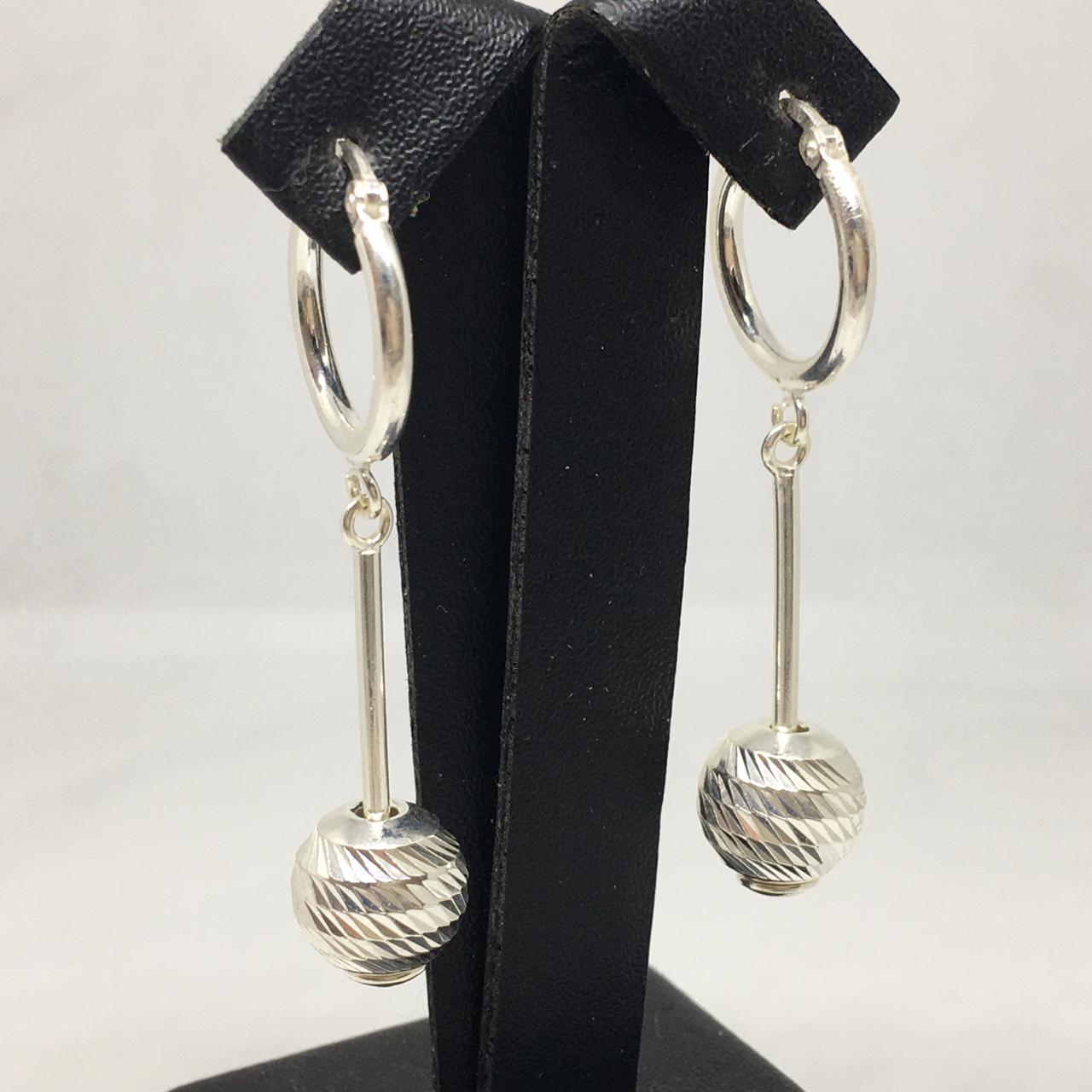 El aro mide 4.5cm de largo en total, la argollita es de 1.5cm de diametro y la bolita es de 1cm de diametro.