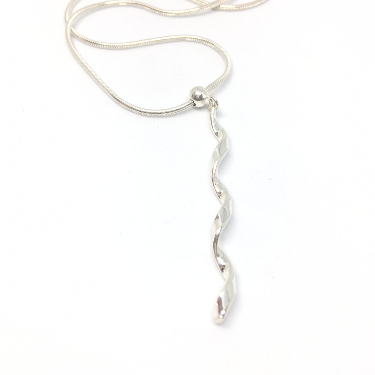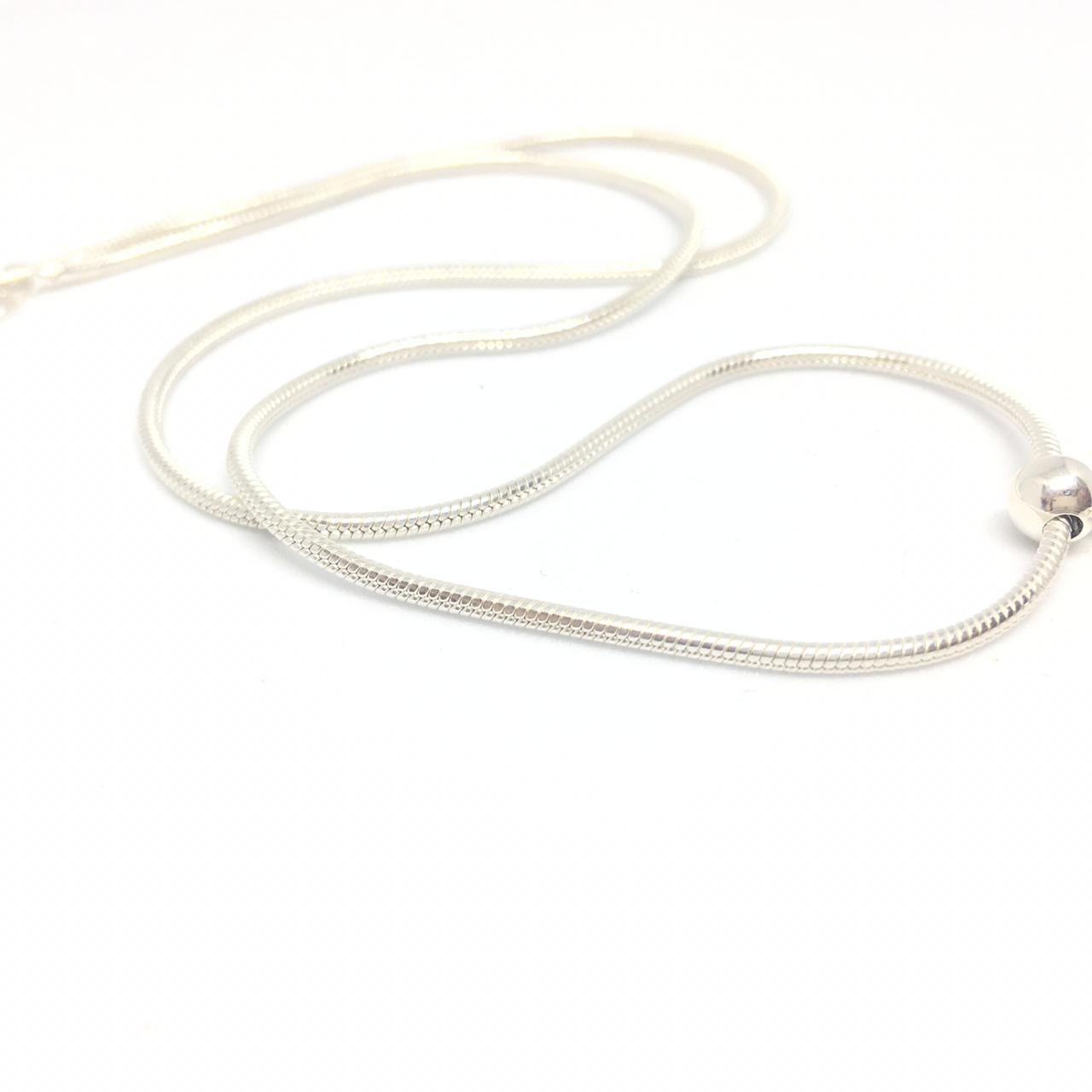 El collar mide 40cm y tiene una extension de 5cm. El colgante mide 6cm de largo y el grosor de la cadena cola de rata es de 15mm.