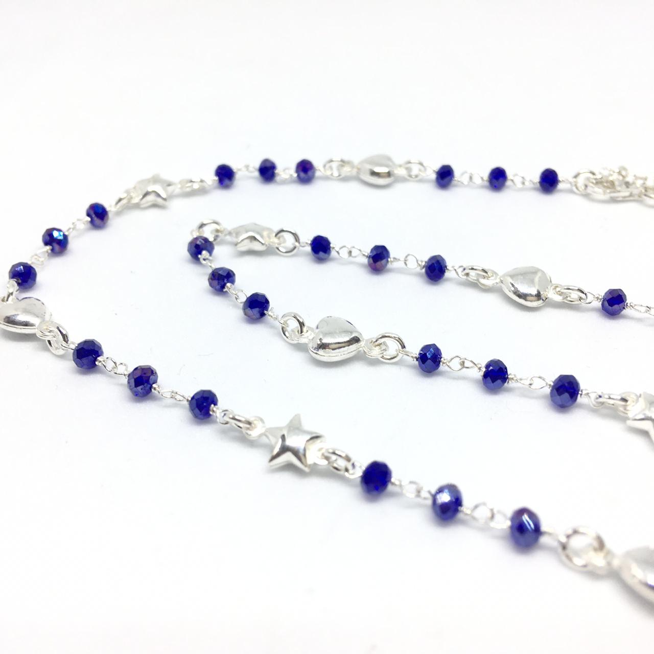 El collar mide 40cm de largo con una extension de 5cm mas.